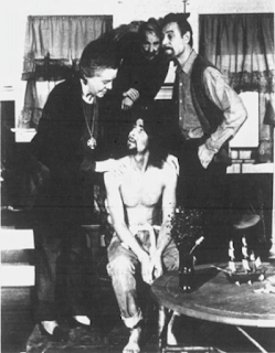 It begins in a beachfront house in a deserted area somewhere on the Northeastern coast of the United States. It serves as the home for five artists: Barney (Gary Merrill), the oldest of the five, the painter; his wife Annie (Carmen Mathews*), the group’s earth mother, a giver rather than a taker; Joey (Jack Gifford), the popular musical-comedy songwriter; Joseph Wiseman, the orchestra conductor; and Kate (Cornelia Otis Skinner), the novelist who has kept the written record of their time in exile—the "report" of the documentary.*Maureen O’Sullivan was originally cast in this role, but was forced to bow out due to illness and was replaced by Mathews, a distinguished actress in her own right.