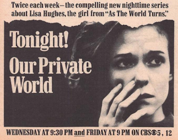 Wednesday sees the premiere of Our Private World (9:30 p.m., CBS), a spin-off from As the World Turns, with Eileen Fulton reprising her role as Lisa Hughes. Don't know if you remember, but our very own Cleveland Amory shared his thoughts about the show in