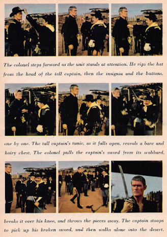 . This week, however, he's involved in something far more mundane: his new Western series Branded, which debuts this Sunday on NBC. Most of you are probably familiar with the show, in which Connors plays Jason McCord, a U.S. calvary officer drummed out of the service on an unjust charge of cowardice. If nothing else, I'm sure you've seen the opening (reproduced below), in which Connors is stripped of his rank, his sword is broken in two, and he's unceremoniously escorted out of the fort. From then on, he spends each episode trying, through his actions, to disprove the charge against him.It's interesting, therefore, to see how Larry Cohen, the show's 29-year-old creator, envisions Branded's themes. "My intellectual concept of the show is that it’s like a Shakespearean tragedy," he explains, "a man mistakenly, unfairly hated and persecuted—a man who must fight to destroy the image of dishonor that follows him." Cohen acknowledges the show's obvious similarities to The Fugitive, but it differs in that "Connors isn’t chasing a one-armed man." Instead, it's the much more existential concept of honor.