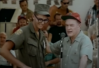 And then he continues, with something surprisingly blunt. Yes, I know one of his writers probably wrote it for him, but I don't think he would have read it without it echoing his own feelings: "But here we are again, and somewhere along the way the realization hit me that we were trapped in a kind of quicksand, and that there was no end in sight. We were paying too high a price in our greatest natural resource, our youth." Everyone talks about the effect on the war when Walter Cronkite turned against it, the possibly apocryphal story that has Lyndon Johnson saying if he'd lost Cronkite, that was it. But what happens when you lose Bob Hope? It's not like he called for an immediate withdrawal, but he made no pretense that everything was hunky-dory.