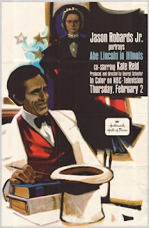 An ad from the 1964 airing.Thursday begins with yet another quality drama on the Hallmark Hall of Fame: "Abe Lincoln in Illinois" (9:30 p.m., NBC), a 1964 rerun starring Jason Robards as Honest Abe, with Kate Reid as Mary Todd. Robert Sherwood's Pulitzer winning play begins in 1830 with young Lincoln establishing his law practice, and ends in 1860 with him bidding farewell as he departs by train for Washington, D.C., to be sworn in as President of the United States. Thursday ends with "David Frost's Night Out in London" on the aforementioned ABC Stage 67 (10:00 p.m.), with David "heading where the action is" in "the most 'In' town in the world," and running into Sir Laurence Olivier, Albert Finney, and Peter Sellers. On Friday night, NET Playhouse presents Roman Polanski's feature film debut, 1962's Knife in the Water (8:00 p.m., NET), a psychological thriller about two men fighting for the same woman. Ah, an eternal story, but not the way Polanski does it. After that, you can get The Avengers' take on The Invisible Man, as Steed and Mrs. Peel check out the case of two Slavic (i.e. Soviet) agents who've obtained an invisibility formula (10:00 p.m., ABC). You won't be able to see through that plot.