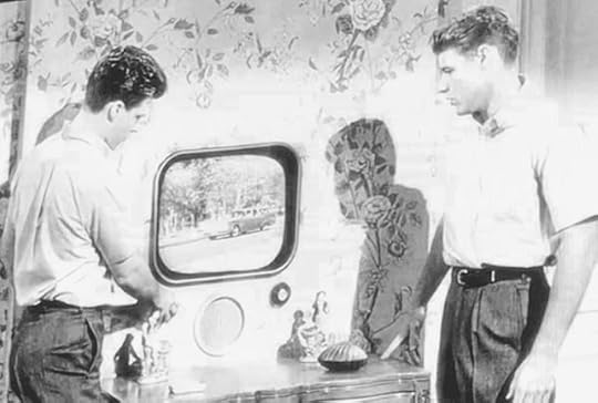 Now there's my idea of living; the Nelsons with a built-in TV! Not too far removed from the wall-mounted concept, is it? And with a lot less to worry about as far as bashing a hole in the wall. And now on to this week's entertainment.The latest edition of "American TV with Mitchell Hadley" is up at Dan Schneider's Cosmoetica, and this month, it's a doubleheader, as Dan and I look at two of recent history's most controversial TV figures: Bill Cosby and Roseanne Barr. You can view them here !