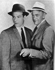 On Tuesday, The Naked City (ABC, 9:00 p.m.) offers one of those little quirks that I always enjoy. The story involves the lead detectives, Muldoon and Halloran (John McIntire, James Franciscus, right) visiting tugboat captain Adam Flint (Cameron Prud'homme). Writer Stirling Silliphant must have really liked the name he came up with for the captain; when the show returned in 1960 for its second season, new star Paul Burke played a detective named—Adam Flint. Either that, or the captain underwent a remarkable career transformation.On Wednesday, British comedian Dave King continues his stint as the replacement for Milton Berle's Kraft Music Hall (9:00 p.m., NBC). King was a somewhat surprising choice to take Berle's place, but as this week's profile points out, he was the right man in the right place at the right time. "We had heard of Dave through his agent in London," explains Larry Kanga, president of General Artists Corporation. "When we saw kinescopes of his show we were terribly excited about him as an American TV personality." It didn't hurt that the kines also impressed Perry Como, whose production company, Roncom, was responsible for filling the timeslot. Como greased the skids by introducing King on a couple of his own shows prior to King taking over the Wednesday night slot. He'll have moderate success in the States despite employing Mel Brooks as one of his writers; King will enjoy a long and varied career, encompassing straight dramatic acting on both television and in the movies, music hall appearances, and comedy series, before his death in 2002 at age 72. Of his transition to American television, King said, "There's little difference between TV over there and over here—except for your meetin's. They kill me." They kill us too, Dave.
