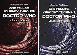 We're talking books this week, and for a change it's not my book we're talking about. Rather, I've got a pile "to be reviewed" books that have piled up while I've been typing away, and now, with the release of Darkness in Primetime less than a month away, it's time to catch up on a few of these.First up is my friend Dan Budnick's wonderful new Doctor Who book, When I Say Read, Read: One Fella's Journey Through Doctor Who. This two-volume set (volume one covers what we might call "classic" Who, while volume two picks up the show after the revival) covers the entire run of the show, up to and including the episodes that aired earlier this year, so when I say nothing is missing in them, I mean it.