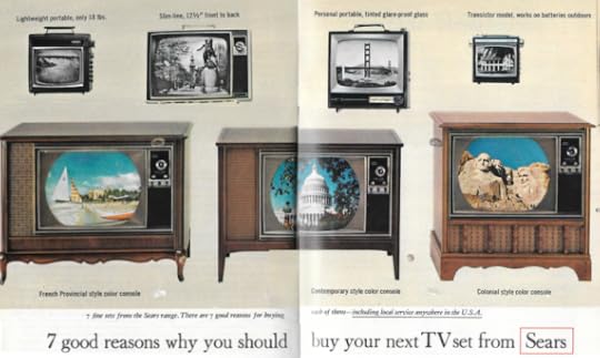 It would be easy to spend an entire column discussing various models, and maybe I should do that sometime. For now, though, what I was struck most by was the sheer number of manufacturers, almost all of them American made, almost all of them nowhere to be seen today: Admiral, DuMont, Emerson, G-E, Magnavox, Curtis Mathes, Motorola, Olympic, Packard Bell, Philco, RCA Victor, Sears Silvertone, Sylvania, Westinghouse, and Zenith. They all have their own trademarks, their gimmicks, their little quirks that make them stand out from their competitors; a technical expert could probably tell the difference between an Admiral and a Motorola the same way a car buff could distinguish an Oldsmobile from a Ford.