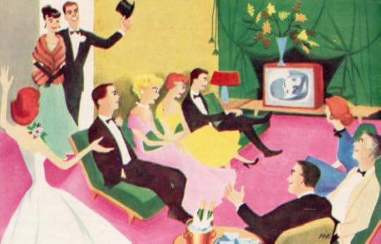 Like that image up there? It's from tomorrow's TV Guide, and while I don't usually tell you what's coming up, I'm making an exception in the case of the 1954-55 Fall Preview edition. Don't you love the idea of people dressing up in tuxes and evening gowns to watch television? After all, what would any good cocktail party be without a little entertainment from the TV? Anyway, I think you'll enjoy the issue, but then I always do.I'd also like to remind you that I still have two copies of The Electronic Mirror available for anyone who wants them, free (plus shipping and handling). At the same time, thanks to those of you who emailed me requesting copies. (And a particular thank you to a generous reader who left a very kind tip for me that is much appreciated. You know who you are!)