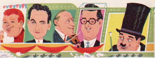 How many of them do you recognize?Perhaps the biggest debut of the season is the new spectacular by Walt Disney. Disneyland isn't what I'd consider a variety show, but it's true that it does present a variety of subjects. Several stars are time-sharing their weekly spots; for instance, Red Buttons will be on three Fridays out of four with Jack Carson slated for the fourth, while Martha Raye, Milton Berle, and Bob Hope will share a Tuesday night spot, and Jimmy Durante and Donald O'Connor split Saturdays. Don't worry, though; your favorites are still around, led by Arthur Godfrey, Jackie Gleason, Jack Benny, Red Skelton, and Ed Sullivan. And the busiest man on TV may be Steve Allen, doing two-and-a-half hours each night on Tonight.
