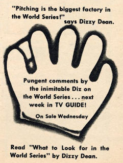 Hurry, before the Series is over!   On Sunday, Ed Sullivan takes Toast of the Town to Cleveland to salute the Indians on the eve of the World Series, where they'll be taking on the New York Giants. (8:00 p.m., CBS) The Series starts in NYC on Wednesday; by this time next week (with Dizzy Dean writing in TV Guide on what to watch for in the Series) it's all over, the Giants sweeping the Tribe in four games, memorialized by