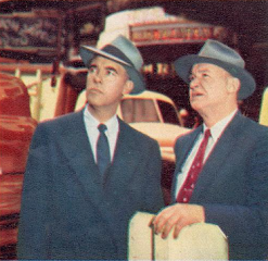Finally, Friday sees the return of shows headlined by Red Buttons (8:00 p.m., NBC) and Jan Murray (the quiz show Dollar a Second, 9:00 p.m., ABC), and the debuts of The Vise (9:30 p.m., ABC), a series of "tense plays," made in England, "that show human beings caught in the vise of fate"; and the aforementioned The Lineup (10:00 p.m., CBS), with Warner Anderson and Tom Tully fighting crime in the City by the Bay. They sure could use them there now. l l l