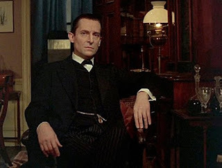 This all brings us to Jeremy Brett's definitive portrayal of Sherlock Holmes in the succession of adventures bearing the Holmes name. I won't take a lot of time to recap, because I've written about the show before, but suffice it to say that Brett, who played Holmes from 1984-94 is everything you'd want Holmes to be: quirky, quick-witted, self-assured, occasionally tortured, frequently arrogant, and virtually always right. He's also surprisingly nimble, of body as well as mind, and I bring that up because it points out how important the physical portrayal of Holmes can be. That physicality projects not only his determination, but the rapidity of his mind; and his body language establishes that, for the criminal, he truly is a dangerous man.Holmes is aided in his sleuthing by his loyal comrade, Dr. Watson, played by David Burke in the first season and Edward Hardwicke in subsequent seasons. This is a Watson who is very smart indeed, a far cry from the bumbling Watson we see in Nigel Bruce's portrayal; he's not at the level of Holmes, of course, but he's learned well from his compatriot, and each episode contains a bit in which Watson demonstrates how he's picked up on the art of observation, often listing the very same clues that Holmes has seen. The difference, of course, is that Watson frequently fails to come to the same conclusion—that is, the correct conclusion—as Holmes, and the cutting retort from Holmes can sometimes be painful, to us as well as to the good doctor, who is the most loyal of friends. Holmes is always quick to temper his remarks, though, and there's no doubt that when he compliments Watson, it is no mere flattery. The chemistry between Brett and both of his Watsons is excellent; it makes them a truly compatible, and formidable, team. Throw in literate, even elegant, scripts (many by John Hawkesworth) and period details that create a perfect atmosphere, and you've got just the thing for those nights when you're looking for a break. Oh, and did I mention that since plugging the Holmes repeats into the schedule, I haven't had to spend even one evening working on the blog? No mere coincidence, I suspect.