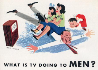 What has TV done to men? Naturally, I'm eager to find the answer to this question; it's likely to be far less expensive than going through analysis. However, while this one-page article is written tongue-in-cheek, I believe it makes some serious points about modern society and the impact perception has on reality."Whatever happened to men?" our unidentified author asks. "You know, those strong, dominant, intelligent creatures who built empires, struggled for democracy, and delved into nature's secrets. Where did they go? What cataclysm left us with the stupid, bumbling nincompoops who pass as males today?" The answer, of course, is television.