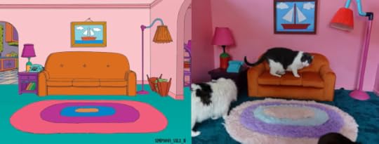 What with this being a holiday week and all, including a three-day weekend (although when you're retired, every week is a holiday week, and every day is a weekend) it seems that we could use something a little more lighthearted around here, and when you can combine cats and television, it's that much better.My friend Daralyn Kelleher makes pet furniture, and in the video below, she shows us a very cool project: making a mini-Simpsons living room for her cats! It's not only a tribute to the show, it's a delightfully whimsical project, yet perfectly practical at the same time. Can't you imagine this in your home?