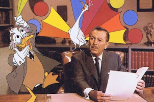 Seldes's relationship with Disney goes way back; "I was," he points out, "born early enough to have seen 'Steamboat Willie,'" the first appearance of Mickey Mouse. He's been a Mickey and Donald fan ever since, and despite Disney's efforts in live-action presentations, they remain the core of the Disney appeal. On the other hand, "I think Disney's early efforts to 'humanize' animals were (and still are) a mistake." He cites an often-fascinating film on the peregrine hawk as an example of Disney at both his best and his worst; the part of the film in which we're shown how the hawk is trained "can entrance the person who doesn't know but is excited by the unknown." He then plunges us into "a wallow of pity for pigeons that get killed and boys who are crippled, and—I think this is what makes me sore—at the end I'm on his side." Let them live their lives and let us live our lives." Everyone knows what it's like to laugh at a joke and, a moment later, feel it was "pretty sour." "I like Disney," he concludes, "even when I don't like him much." Lest you get the wrong impression, though, he adds this: "Walt Disney is one of the very few people who has added to the enjoyment of life of virtually everyone now alive. The only single human being I know who has done more in the entertainment profession is Charles Chaplin." He doesn't know if Disney would take that as a compliment or not; I think he would. But, in it's most literal sense, "the world of Walt Disney is a part of the world we cannot live without."