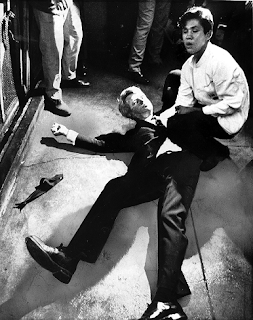 *Those early reports had Kennedy being shot in the hip; I've never been sure if someone originally misunderstood "head" as "hip," or if they confused the wounds with those of one of the other bystanders who'd been shot.