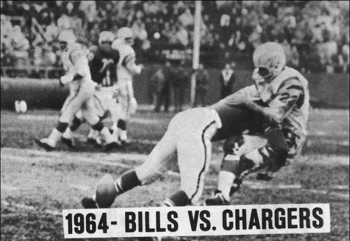 The two pro leagues have coordinated their championship game schedules to avoid conflict, and so the AFL leads off on Saturday with the defending champion San Diego Chargers taking on the Buffalo Bills at 1:00 pm on ABC. It's one of the most memorable games in AFL history, as the Bills, riding the arm of Jack Kemp and a ferocious defense, dismantle the Chargers 20-7. Most remembered of all is Bills linebacker Mike Stratton's tremendous hit on Chargers star Keith Lincoln, "