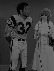 The Juice and Jill St. JohnI said that football was all but over: there is, in fact, one game yet to be played, but that one game is the Super Bowl, to be played on January 17 in Miami. It will be a game of firsts: the first Super Bowl since the AFL-NFL merger, and the first to be played on artificial turf. But that's next Sunday; this Sunday evening at 8:00 p.m. CBS warms us up for the big game with something called The Super Comedy Bowl, a one-hour variety special featuring an odd combination of celebrities and sports figures, including Lucille Ball, Jack Lemmon, John Wayne, Charlton Heston, Jill St. John, and Charles Nelson Reilly from the Hollywood side, and Ben Davidson, O.J. Simpson, Joe Namath, Roman Gabriel, Deacon Jones, and Dick Butkus on the jock side. This is the first in a series of Super Bowl tie-in variety specials over the next few years, most of which would be broadcast the night before the game with titles such as