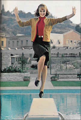 Let's see, it's been awhile since we've had a starlet of the week, hasn't it? Well, let's try Debbie Watson on for size.Debbie, still 15 at the time this issue comes out (she turns 16 on January 17) is, in the words of "people who should know," one of the "it" girls—that is, whatever "it" is that makes someone a star, she has it. She's the lead in the sitcom Karen, one of the three programs that makes up the umbrella series 90 Bristol Court on NBC*, and even though that series only lasts a year, she'll rebound to star in the 1965-66 version of Tammy, based on the big-screen movies. In 1966 she'll take the place of Pat Priest in Munster, Go Home. And at this point, she is getting a kick out of the whole thing.