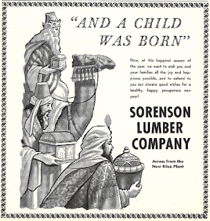 As I’ve said in the past, one of the great treasures of TV Guide is that it shows us how life used to be, and often gives us tantalizing hints as to the shape of things to come. “The Community Magazine” isn’t TV Guide per se, but as a TV Guide substitute it delivers the same payoff.This is the January 1963 issue, which means it would have come out sometime in December 1962, and as such represents the last chance for advertisers to wish their customers the greetings of the season. And herein lies the tale. Taken collectively, these ads present a remarkable slice of life from the early 60s: a time when religion was an accepted—no, a necessary—part of the public square, and when the PC police hadn't ridden Christmas out of town in the name of "diversity." This isn’t to say that the advertisers themselves shared those theological sentiments, but they believed strongly that this was appropriate to the season.