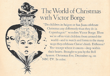A few shows to spotlight on Christmas Eve: Victor Borge hosts "The World of Christmas," The Bell Telephone Hour's traditional Christmas Eve show (6:30 p.m., NBC), opposite which ABC airs "Christ is Born," first telecast in 1966 on The Saga of Western Man, narrated by the show's writer, John Secondari, with John Huston reading passages from the Bible. In syndicated specials WCCO airs a Merv Griffin Christmas special (6:30 p.m.), with guests including Garry Moore, dancers performing a scene from The Nutcracker, and singer David Soul; meanwhile, at 7:30 p.m., KAUS has the King Family Christmas special.There's also a Christmas episode of the musical-comedy series That's Life (9:00 p.m., ABC), starring Robert Morse and E.J. Peaker, with tonight's special guest stars Leslie Uggams, Rodney Dangerfield, the Bill Baird Puppets, and comedian Joe Jackson Jr. Another choice is Holiday Inn (9:00 p.m., WTCN); there's been some fair debate lately as to whether or not this is actually a Christmas movie, since there are nearly a dozen other holidays involved; I come down on the side of "Yes," since it opens on Christmas Eve, continues on Christmas Day, and the climactic scene occurs on the following Christmas Eve. Throw in New Year's, which is part of Christmastime, and what more do you need?