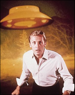 Now, my theory on this is that Vincent was drunk from one of his bouts with the bottle after Helen dumped him, which explains his getting lost. It's also why the authorities suspect Vincent merely thought he'd seen a flying saucer, when it was probably something else entirely. And, needless to say, it's one of those aliens who winds up killing Helen's husband, after which Vincent becomes conflicted, since the very aliens he's been trying to out are responsible for reuniting him with his lost love, and decides to give up the fight for good. Or maybe Helen's one of the invaders. Or perhaps after her husband dies, she marries a doctor in Indiana and becomes known as Helen Kimble.That's the great thing about television, isn't it? Absolutely anything's possible. No wonder it's the (Chrysler) theater of dreams. TV