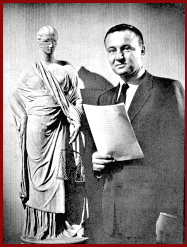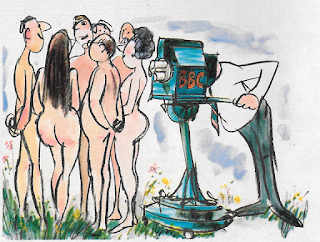 Anyway, Perleman is writing this week about nudity on television, and if you think I was going to pass up that story, you're crazy. The origin of the story comes from a recent BBC documentary dealing with nudism. The whole thing bothers Perleman, not because the site of naked men and women offend him; after all, as he points out, "every schoolboy polled [in Britain] knew more about sex than his family obstretician." No, what bothers our author is how the BBC wasted this nakedness on a documentary, eschewing "the juicy potential of skin as entertainment."As an alternative, Perleman proposes a story based on the recent case of Miss Pamela Brewer, 18, who was found guilty of violating University of Florida rules for posing nude "on a bear rug" for a men's magazine. In Perleman's hands, Miss Brewer becomes Crystal Gondorf, a "demure but zottick freshmen, with a brain rivaling Spinoza's encased in the body of a Lollobrigida" Having undeniably verified that the picture is, in fact, of Miss Gondorf, university president Butterfoss has no alternative but to expel her. Crystal claims her innocence, comparing her situation to that of Josef K. in Kafka's The Trial. Eventually, it turns out the picture was doctored, the culprit being one Babs Cheesewright, a classmate jealous of Crystal's (pre-nude) popularity.