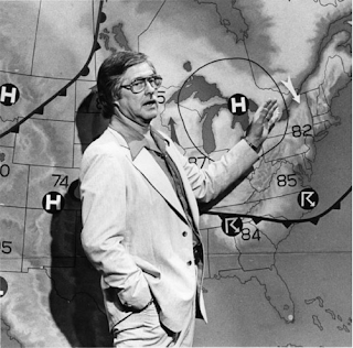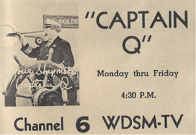 I do have a fondness for the kids shows that used to be a staple of afternoon local programming; it's the kind of thing I grew up with. Nonetheless, there is something pretty hokey about this ad, isn't there?Captain Q was played by Jack McKenna, who, like so many kids show hosts, was also the weatherman. Here's a picture of him doing a weathercast—want to guess the era? That collar of his could have doubled as a cold front milllibar, don't you think?