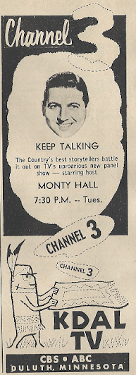 I dare say that KDAL wouldn't be able to use this ad today. I don't know enough to figure out the smoke-signal tie-in, unless it was just indicative of the culture of the time, what with Westerns being so popular. And it's also interesting to think of Monty Hall hosting something other than Let's Make a Deal, isn't it?