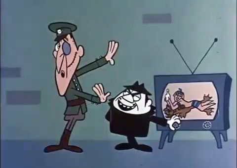 At Great but Forgotten, an interesting piece on The Funny Company , a 1963 syndicated cartoon that appeared as filler on local kid shows. I have to admit it doesn't ring any bells with me, but I'm certainly familiar with this kind of five-minute type of cartoon, something like The Mighty Hercules or Roger Ramjet . I miss those days, as much as I miss local kids' shows. But there again, I'm just showing my age. TV