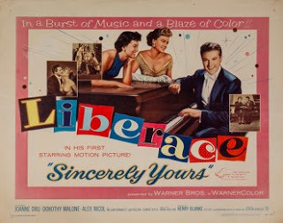 And since we began with Liberace, we'll end the same way: Dorothy Malone has been signed to appear opposite Lee in his feature film debut, Sincerely Yours. The movie, unlike Liberace's television career, is a bomb—so much so that,
