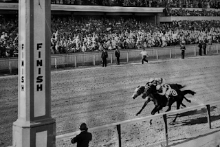 Close, but no cigar for Native DancerAs Chester Gould points out, TV is also an entertainment medium, and there's nothing more entertaining on Saturday than the 79th running of the Kentucky Derby (4:00 p.m., CBS). Unbeaten Native Dancer is the heavy favorite, butthe Gray Ghost is upset by Dark Star, who wins a neck. It is the only blemish in the Dancer's magnificent career; he wins both the Preakness and Belmont Stakes, and retires with 21 victories in 22 races. That race was seen on TV by 40 million viewers, or about 25 percent of the U.S. population; as Chester Gould said, TV is a scientific miracle, and it must have seemed a miracle to many that they could watch the celebrated race from the comfort of their home living room. I wonder how many ever got any closer to Churchill Downs than that?t t t