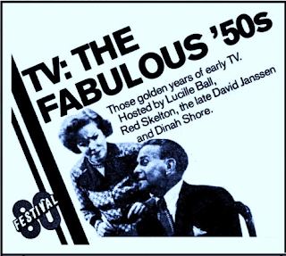 Here's one example: on Wednesday night at 8:00 p.m., following the latest Jacques Cousteau documentary (a constant over the years in these issues, don't you think?), WENH has TV: The Fabulous 50s, a 90-minute retrospective on "television's golden age" with sketches from Milton Berle, Ernie Kovacs, Jackie Gleason and Art Carney, and clips from shows like The Untouchables, Gunsmoke, I Love Lucy, Frank Sinatra and Paul Newman in a musical version of Our Town on Producers' Showcase An all-star list of hosts—Lucille Ball, Red Skelton, Mary Martin, Dinah Shore, Michael Landon and David Janssen—share their memories from those days.What you have to remember about these pre-VCR/DVD and YouTube years is that compilation retrospectives like this were often the only chance viewers had to see many of these programs from the 1950s. For every Twilight Zone, I Love Lucy and The Honeymooners, which seem never to have been out of circulation, there were probably ten others that were seldom seen in syndication by the 1980s, including classics like The Fugitive and The Untouchables. (Hour-long shows never did do well in syndication.) PBS was about the only place you could see Ernie Kovacs, or some of the early anthology dramas. I was always a sucker for shows like these, going back to the anniversary specials that each of the networks did in the late 1970s, and I'd have to think that I watched this (I'm sure KTCA in the Twin Cites must have shown it), but I confess to having no memory of it.