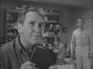 And that final lesson of Romney Wordsworth's death, the one that most becomes his life, can be found in that book he holds in his hands, where the apostle Paul rhetorically asks the Corinthians, "Death, where is thy sting?" For to fear death is to fear life, and to fear life one might as well be dead. There's another line that Rod Serling wrote for his conclusion, one that wasn't used but sums up the lesson of "The Obsolete Man" quite well. "Any state, entity, or ideology becomes obsolete when it stockpiles the wrong weapons: when it captures territories, but not minds; when it enslaves millions, but convinces nobody. When it is naked, yet puts on armor and calls it faith, while in the Eyes of God it has no faith at all." Just as tyranny is timeless, so is truth. TV