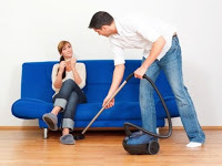 Women have been raised seeing only women do this menial work and have been told they are a failure if it is not done by them and done perfectly. To counter this problem, you must explain how you enjoy doing it, how it makes you feel closer to her, how it takes away your guilt feelings. She must see you enjoying it and you must NEVER complain. Ask her advice and for her to inspect your work. Tell her that you do it for her so she has more free time. Encourage her to go out and do things with her friends and, yes, even male friends.Remember you are there to make her life a joy, and if that means you become a cuckold, then be happy you are and happy she is enjoying her life. Remember you are not the sex object, she is, and you are just the maid. Ask her permission and her choice of how and when you get sexual relief and then obey her.