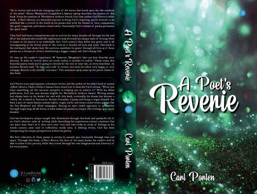 Carl Porten is an aspiring poet, a freelance writer and author of his new book of poems “A Poet’s Reverie”. When you want something, all the universe conspires in helping you to achieve it. Paulo Coelho. This has been so true for Carl. Writing poems had always been on his bucket list and with this book, eventually, this dream has become a reality. He is based in Vancouver, British Columbia, Canada and being a vegan himself has been a part of many famous animal rights, vegan, earth and oceans conservation groups like Sea Shepherd and allied campaigns. Having an open ended approach to spirituality through respecting all life forms is what makes his poems so unique. His writings span many decades. Carl has developed an unique insight that illuminates through this book, that speaks for all of us. Carl’s abstract style of writing while describing his experiences extract emotions that can move your heart as if they were your very own, evoking an array of feelings as his words connect your soul to reflections rarely seen. A lifelong writer, Carl has been interpreting his unique perspectives within his poetry. With this first publication, he has become eligible for Wordsbrew Authors’ Award. His first collection of these poems is certain to cascade you through time and space, as if you were there yourself. Through this book, A Poet’s Reverie , the first of his many books, Carl has plans to publish, the readers will be able to relate to his journey, while they travel and share his enriching experiences through his vast imaginarium and itinerary of his vocal poems.