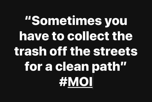 “Sometimes you have to collect the trash off the streets for a clean path”