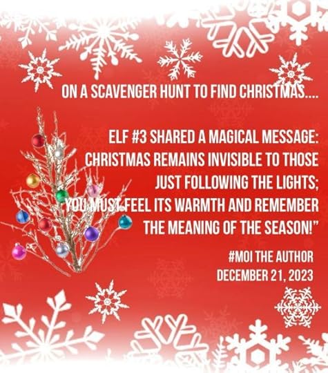 Elf #3 shared a magical message: Christmas remains invisible to those just following the lights; you must feel its warmth and remember the meaning of the season!”