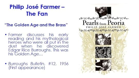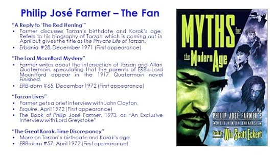 With thanks to Bill Hillman's ERBzine for the image conversion of my presentation, I'm pleased to make it available on Farmer's 101st birthday. Bill Hillman is also kindly hosting the presentation on his ERBzine site.