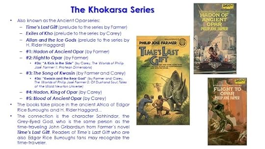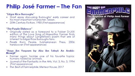 I'd also like to thank The Official Philip José Farmer Web Page, which was a great resource as I prepared the presentation, in helping me verify that I covered everything.
