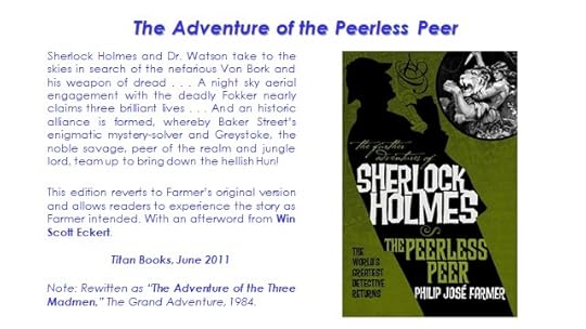 Pemberley is a darkly erotic novel with broad appeal to readers of pulp and popular literature, particularly followers of Doc Savage, Sherlockians, and fans of Farmer’s own celebrated Wold Newton Family.