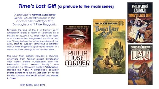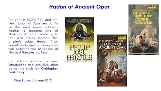 Approximately 10,000 BCEThe Khokarsa/Ancient Opar cycle by Farmer and Christopher Paul Carey. I won’t recap all the tales here, since Carey has already created a handy checklist.