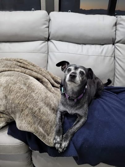 Here’s a pic of Maggie on the couch inside the trailer: