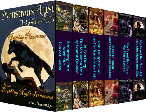 Bundle Number 5 is out for the Monstrous Lust Series! It’s got werewolves, lots of werewolves. It’s got forest gods and flaming tendrils. In fact, it has a whole den full of monsters that want to tingle unfortunate (or are they?) playthings with their lust filled and exotic bodies from another world.