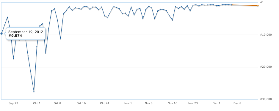 Like my new badge? I was *shocked* this morning when one of my reviewer friends emailed me to let me know that Someone Else's Fairytale had been featured on Pixel of Ink. Pixel of Ink is very choosy. I personally know exactly one other person who's been featured by them, and she had over 250 five star ratings when that happened. So today I had a very fun sales spike and get to wear the badge, something I didn't think was in the cards for a long, long while.That kind of overshadows my other announcement, which is that I posted about my collaboration with German translator, Michael Drecker, on The Scribbler's Cove. Head on over there for the details, while I just provide this visual. It's the sales chart for the book's sales on Amazon.de.