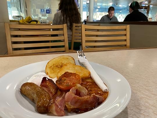 We were inevitable half an hour late, but the scenery was superb and I had booked a cabin for this crossing, which was a little like being on a cruise. First though, breakfast.