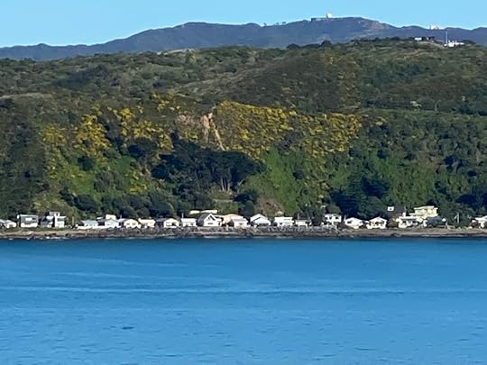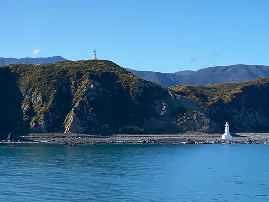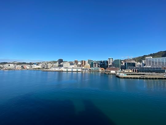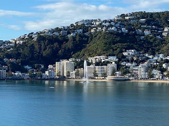 Wellington in all her gloryIt was very still, the sky dazzling blue, and with fountains spraying high and kayakers paddling, a lovely sight as we left the harbour and past into the open sea.