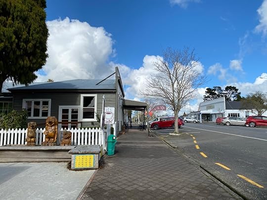 GordontonAnd here it is – the first photo of Alfie on the road, showing my precision at backing into a car space for the first time. As you can see I straddled it. This was at Gordonton, an hour out of Auckland and when I was ready for a coffee. It felt good, and even better when the view from the cafe window was of this wee machine smiling back at me.