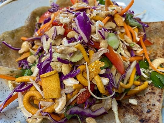 I managed to pull in to a large space on the side of the street, and went in to what looked like a popular cafe. There I ordered an Asian salad and chai latte.