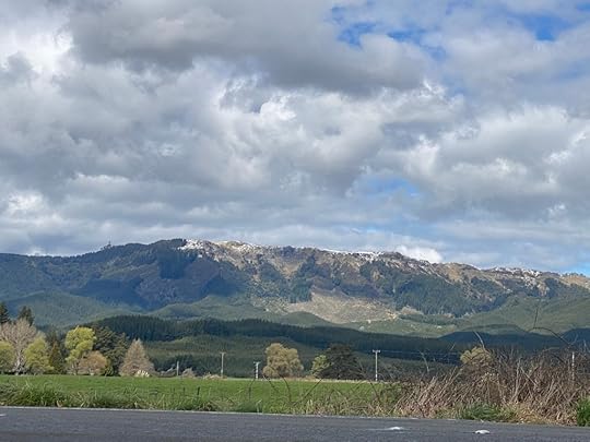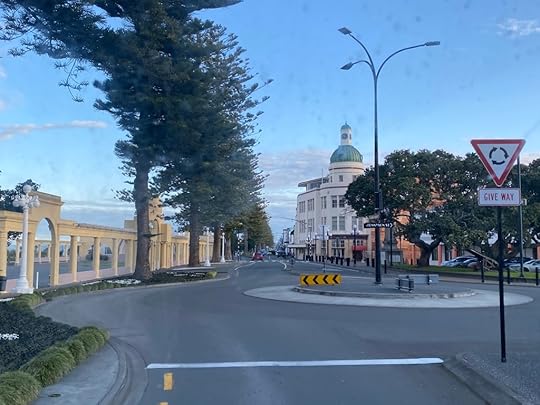I’m jumping ahead of myself of course. This morning started back in Taupo with a final hot swim and soak before we headed off to the local supermarket for some supplies. It’s all new to me this camper van lark – finding the special car spaces designated for the vans. Napier is two hours from Taupo through some ranges and the odd gorge – the latter half being the more scenic. Snow on the top of the hills and barely melted ice on the road made it an exciting trip.