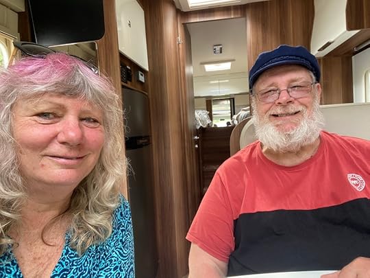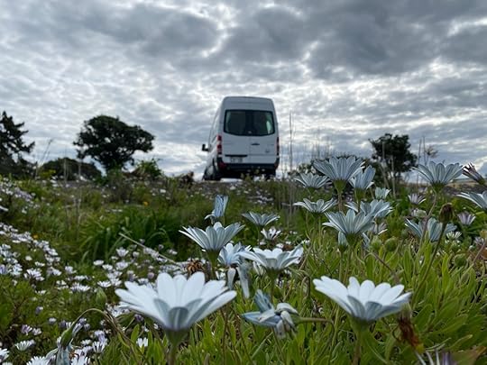 Stephen had already partaken of lunch, so I headed over to the bakery and got a couple of chicken on a stick, and chewed them on our continuing journey south. How nice to slot in behind another camper van and for once BE the annoying slower cumbersome traffic that holds up cars. What a happy feeling! Not that we did hold much up – the trucks that we followed did a much better job.