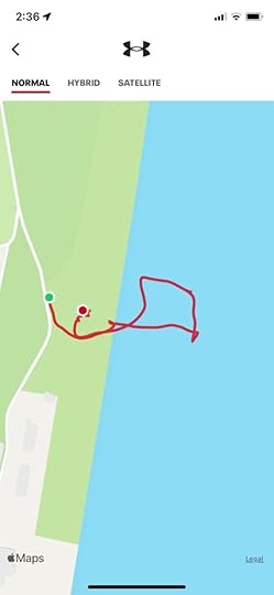 Arrived at the Napier Beach Top 10 Holiday Park and paid our (roughly) $50 for prime views. Now the funny bit. I pressed ‘go’ on my MapMyWalk and set off along the beach. Found myself sinking into the shingle and struggling to progress. Kept going thinking it must get firmer. It didn’t. This is the map of my exercise: